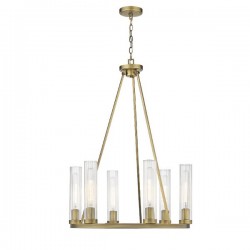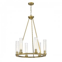 Luminaire suspendu 26'' avec verre cylindriques clair ondulé