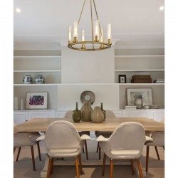 Laissez vous tenter pour le décor d'inspiration industrielle avec le lustre à six lumières BEAU, embrassant sa silhouette circulaire astucieuse et la combinaison d'acier et de verre chic. Ce luminaire avant-gardiste offre une esthétique inoubliable avec un cadre en acier et des accents soit, bronze, nickel poli et laiton brossé, et des abat-jour en verre cannelé minces placés uniformément. Le contraste dans les matériaux témoigne d'un motif vraiment transitoire qui offre une polyvalence, une sensation dramatique et une superbe source d'éclairage ambiant dans une cuisine ou un espace de vie.