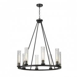 Luminaire suspendu 33'' avec verre cylindrique clair ondulé
