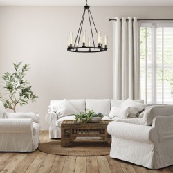 Laissez vous tenter pour le décor d'inspiration industrielle avec le lustre à huit lumières BEAU, embrassant sa silhouette circulaire astucieuse et la combinaison d'acier et de verre chic. Ce luminaire avant-gardiste offre une esthétique inoubliable avec un cadre en acier et des accents en finition soit, bronze, nickel poli et laiton brossé, et des abat-jour en verre cannelé minces placés uniformément. Le contraste dans les matériaux témoigne d'un motif vraiment transitoire qui offre une polyvalence, une sensation dramatique et une superbe source d'éclairage ambiant dans une cuisine ou un espace de vie.