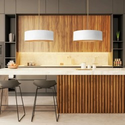 Ajoutez une touche industrielle à votre ilot de cuisine avec la collection REXTON. Son abat-jour en métal ondulé se décline dans un fini noir mat ou blanc mat moderne, tandis que l'intérieur est peint dans une nuance dorée parfaite. Sa tige ajustable vous permet de l'abaisser à la hauteur idéale, et ses trois ampoules réfléchies par la peinture dorée apporteront à la fois le bon éclairage et une ambiance chaleureuse.