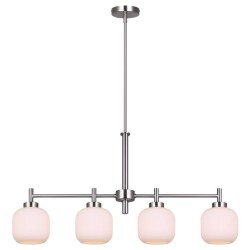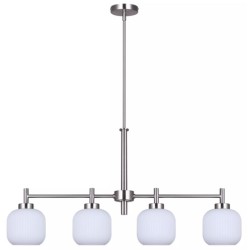 Le lustre à 4 lumières Mallory est un luminaire simple mais élégant qui allie le charme du milieu du siècle à l’attrait contemporain. Doté d’un verre plat à nervures opale et de détails en nickel brossé, ce luminaire apporte une touche raffinée à n’importe quelle pièce.