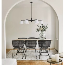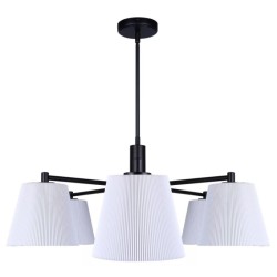 Découvrez Aspen, une suspension intemporelle qui allie simplicité et charme. Ce luminaire noir est doté de bras élégants supportant des abat-jours en tissu blanc plissé. Cette suspension diffuse une lumière douce et accueillante, devenant un point focal dans n'importe quelle pièce.